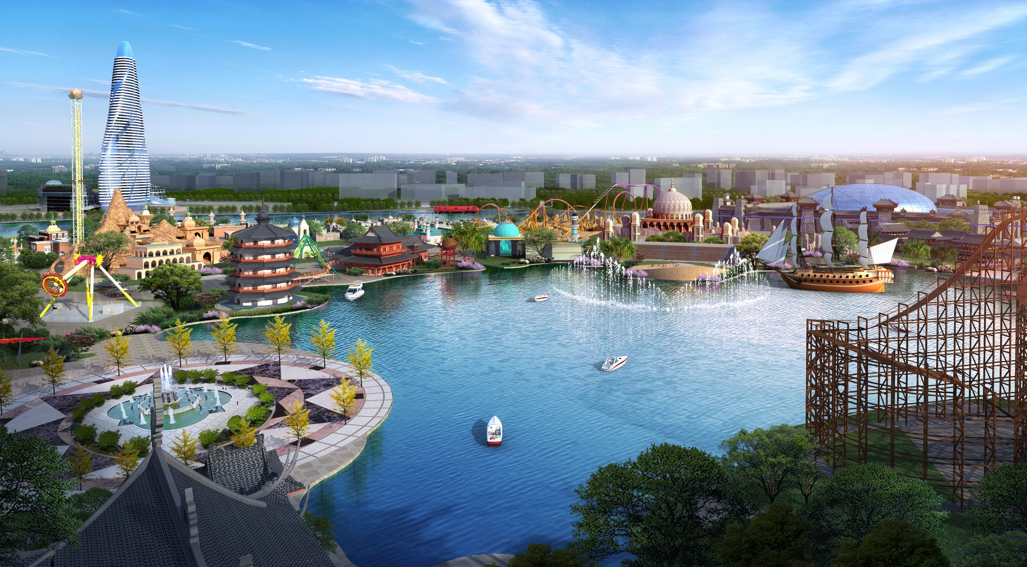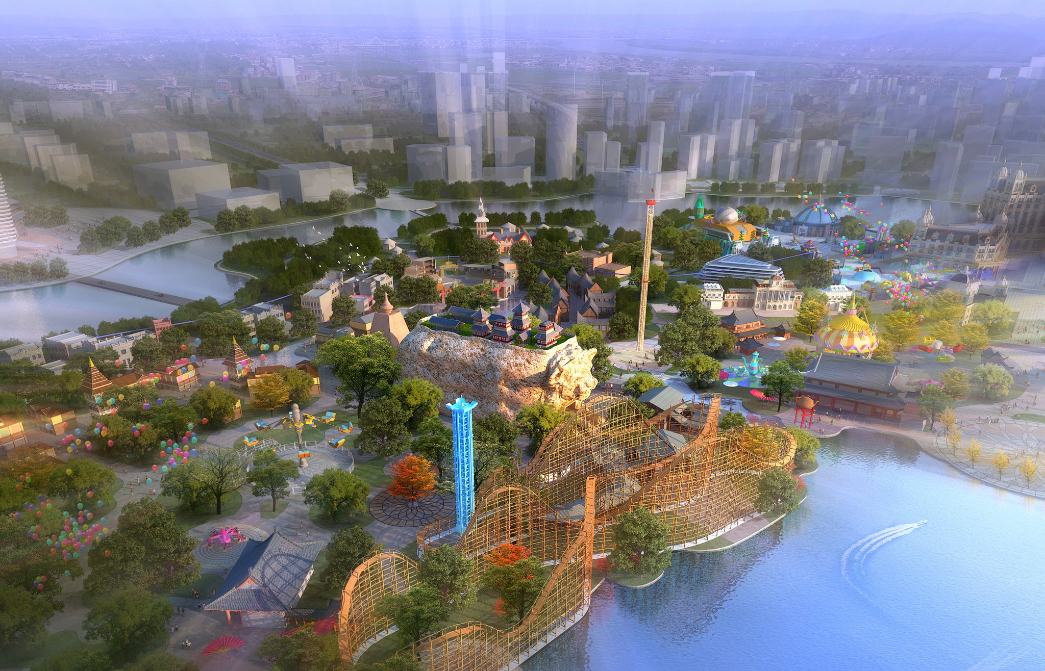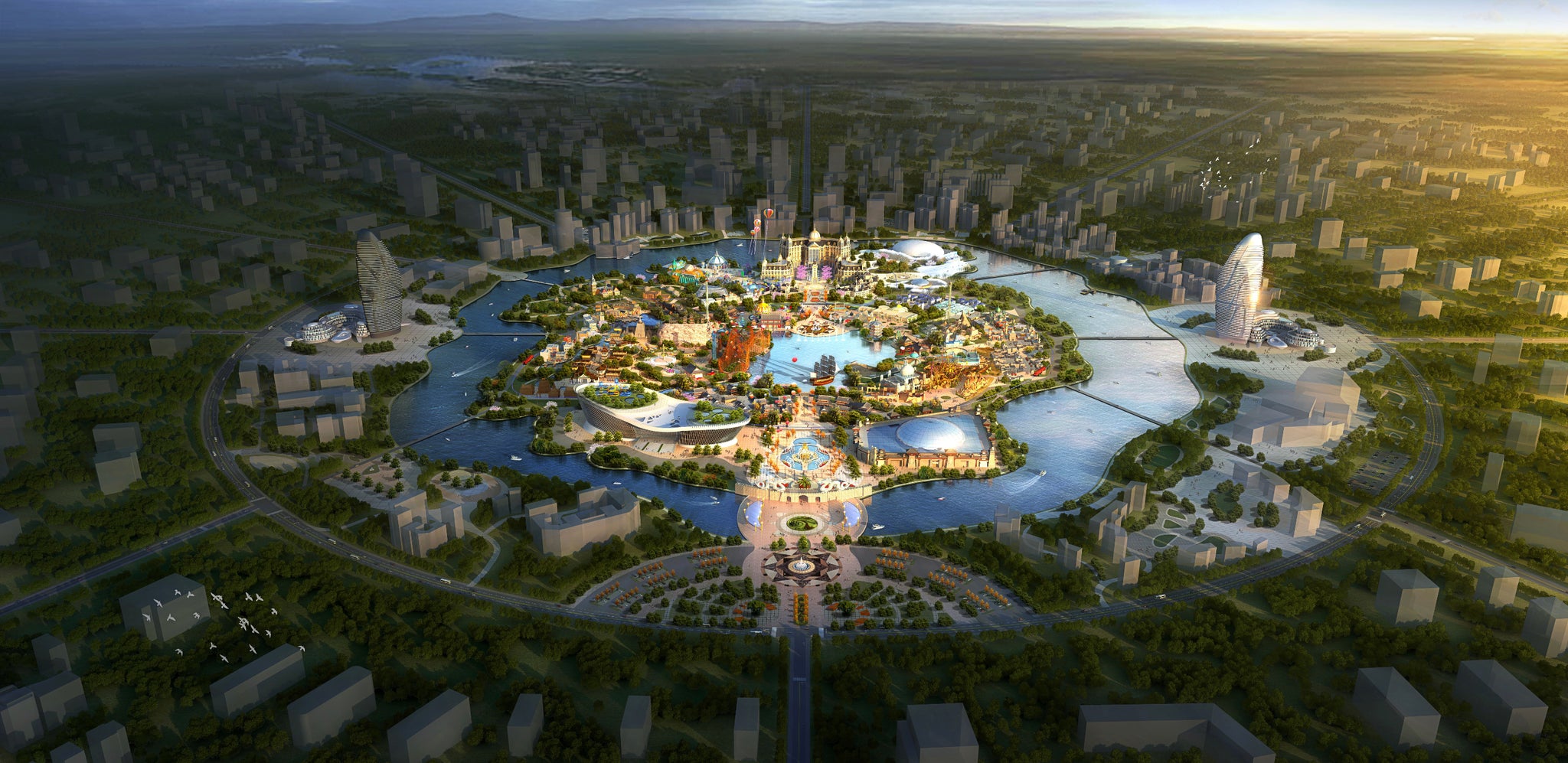 The concept design of the Langfa 3000 acres was devised in two parts, a 1200 acres Theme Park (silk road theme) in the center and a 1800 acres (Belt & Road theme) surrounding, All, under the Ying and Yong Concept.